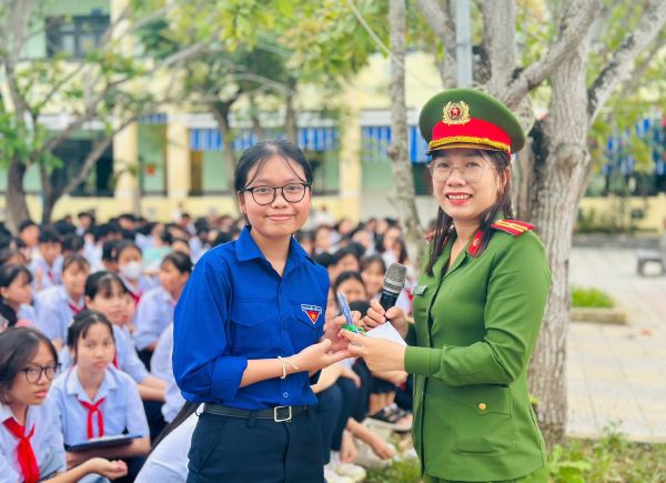 Mở đầu chương trình, hơn 700 đoàn viên, thanh thiếu nhi đã được Thiếu tá Phạm Hồng Minh – Trưởng Công an phường Điện An truyền đạt những kiến thức quan trọng về pháp luật và an toàn giao thông. Đồng thời, trang bị cho các em kỹ năng phòng chống tệ nạn ma túy, bạo lực học đường và nhận diện những nguy cơ vi phạm pháp luật trong lứa tuổi vị thành niên. Buổi tuyên truyền diễn ra sôi nổi với hoạt động giao lưu, đặt câu hỏi, tạo cơ hội để thanh thiếu nhi tham gia thảo luận, chia sẻ quan điểm và nâng cao nhận thức của mình trước pháp luật và an toàn giao thông.