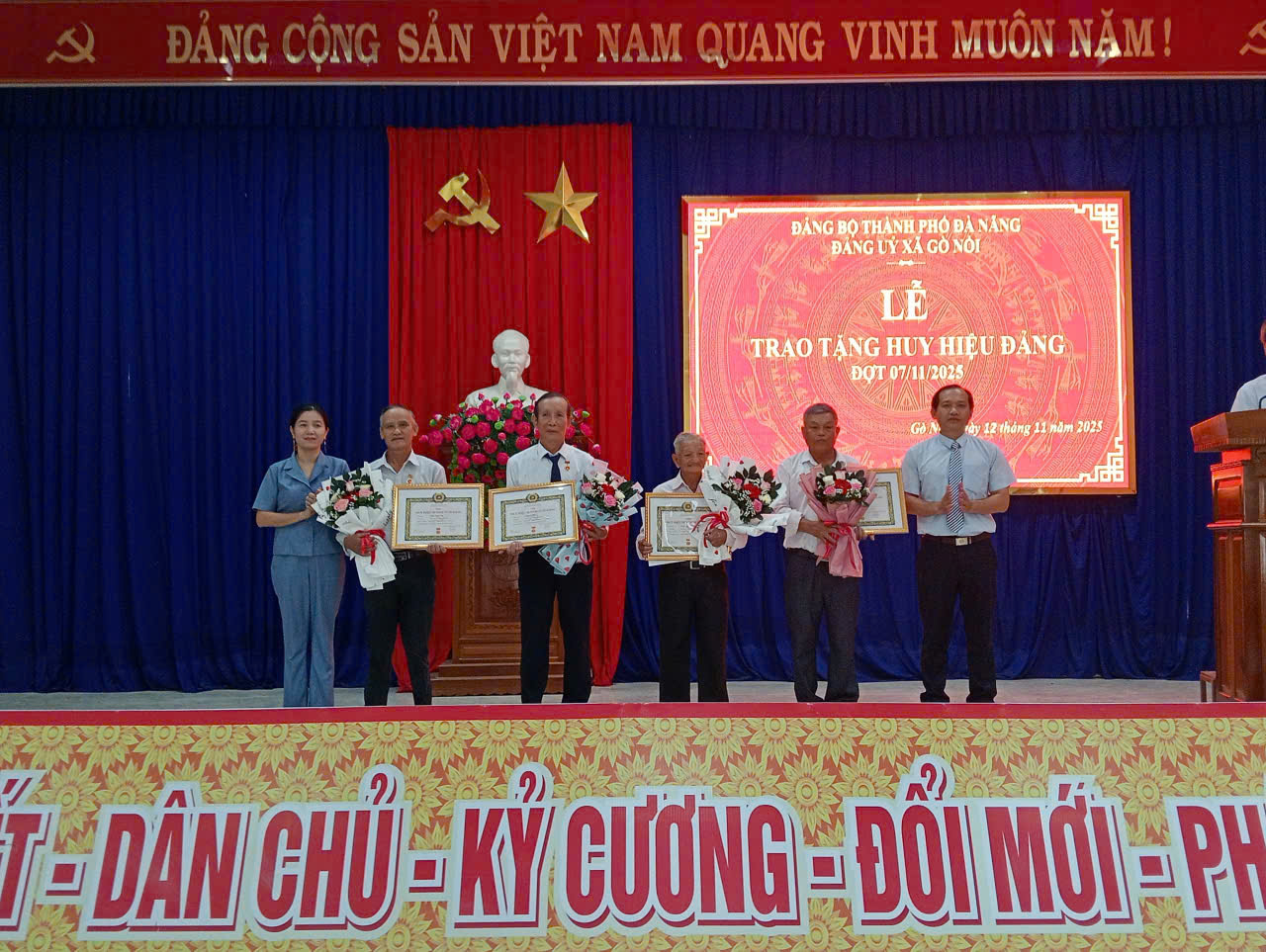 Đợt 7/11 năm nay, Đảng bộ xã Gò Nổi vinh dự có 6 đồng chí đảng viên được tặng Huy hiệu từ 30, 40, 55 năm tuổi Đảng.