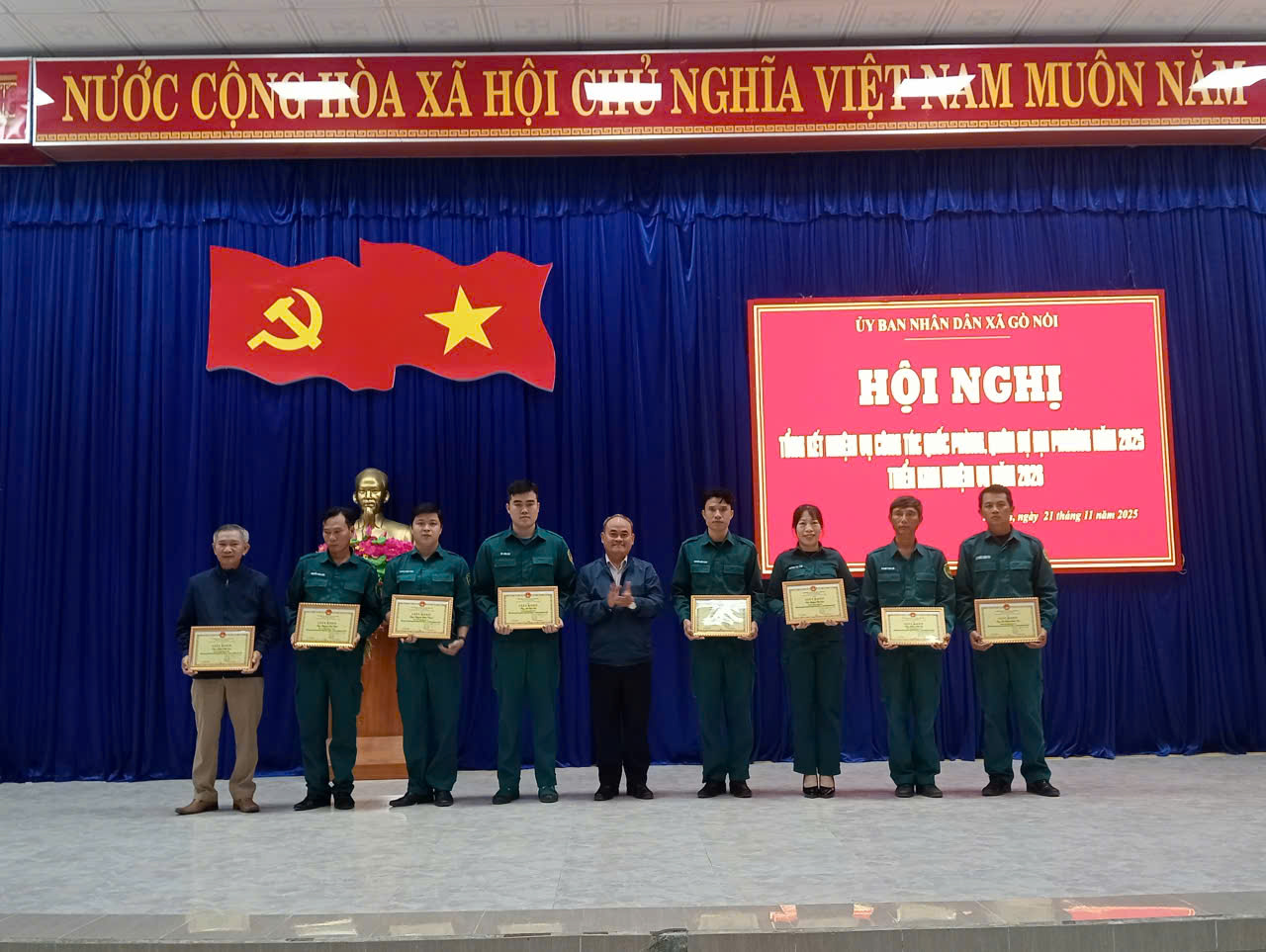 Dịp này, Ban chỉ huy phòng thủ khu vực 5 Điện Bàn tặng giấy khen cho 4 đồng chí có nhiều thành tích trong công tác quốc phòng, quân sự địa phương năm 2025. UBND xã Gò Nổi tặng giấy khen cho 4 tập thể và 8 cá nhân có nhiều thành tích trong công tác quốc phòng, quân sự địa phương năm 2025.