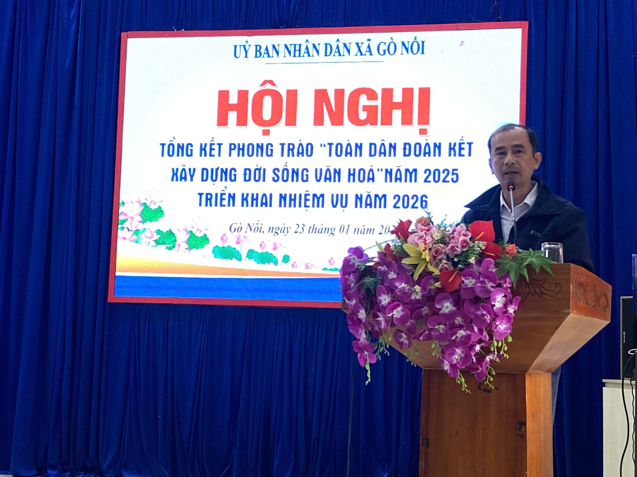 Phát biểu chỉ đạo tại Hội nghị, đồng chí Mai Ký – Trưởng phòng Xây dựng nếp sống văn hóa và Gia đình, Sở Văn hóa, Thể thao và Du lịch thành phố ghi nhận, biểu dương những kết quả mà xã Gò Nổi đã đạt được trong phong trào “Toàn dân đoàn kết xây dựng đời sống văn hóa” năm 2025. Đồng chí đề nghị trong thời gian tới, Ban Chỉ đạo phong trào xã tiếp tục nâng cao vai trò lãnh đạo, chỉ đạo; chú trọng nâng cao chất lượng các danh hiệu văn hóa, tránh chạy theo số lượng; đẩy mạnh công tác tuyên truyền, phát huy vai trò tự quản của cộng đồng dân cư, gia đình, tộc họ; kịp thời phát hiện, nhân rộng các mô hình hay, cách làm hiệu quả, góp phần xây dựng môi trường văn hóa lành mạnh, văn minh.